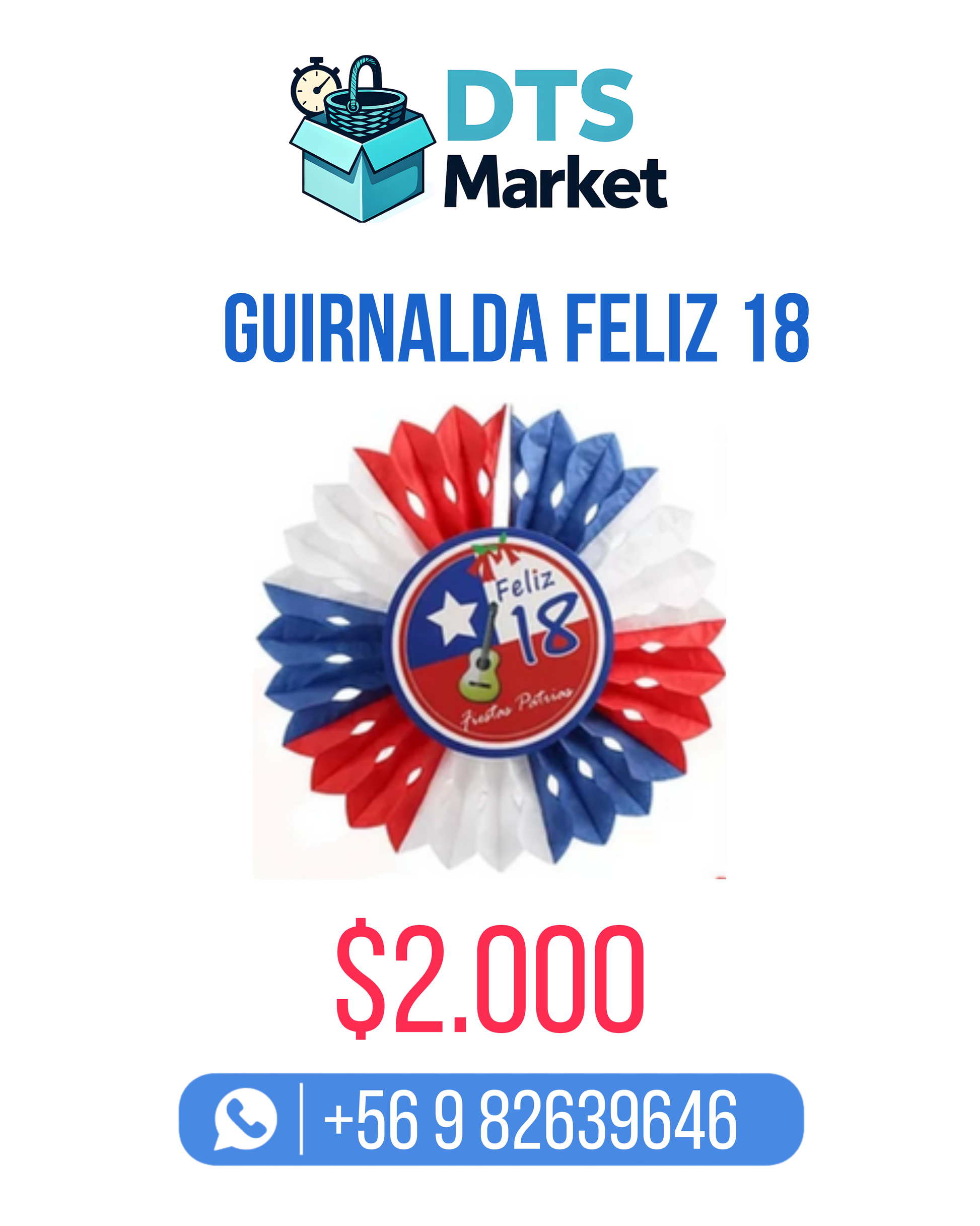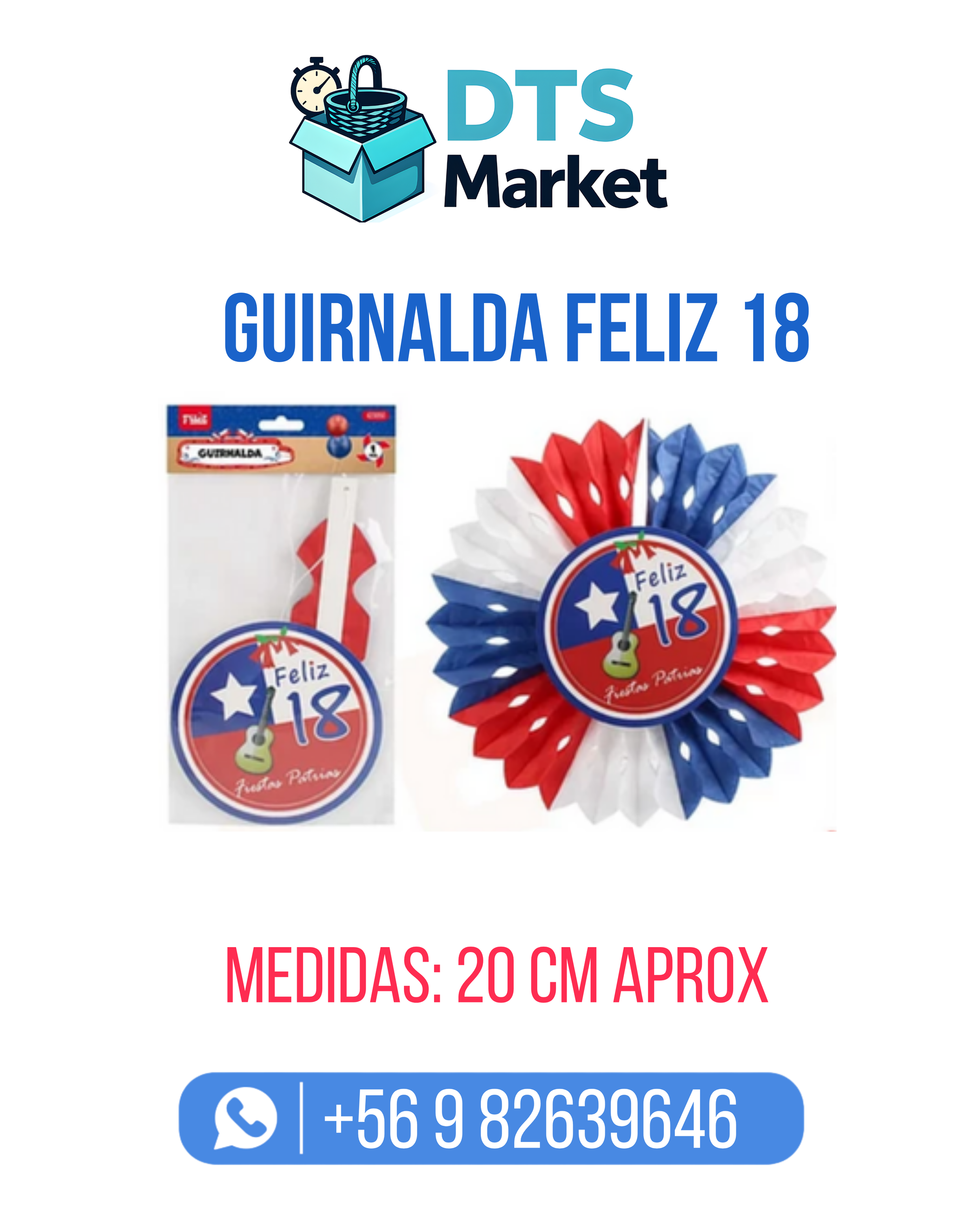 Guirnalda con Detalle "Feliz 18"- 1 Unidad - Medida: 30 cm aprox.